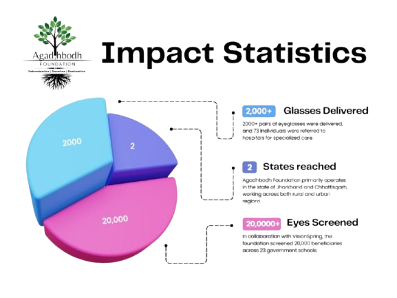 The Drishti initiative, led by the Agadhbodh Foundation, is a flagship healthcare program focused on providing free eye screenings and corrective eyewear to underprivileged students. Recognizing the impact of digital screens and poor dietary patterns on vision, the initiative aims to eliminate visual barriers to education.